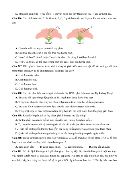 Câu 306. Cho hình ảnh sau có các kí tự A, B, C, D phát biểu nào sau đây sai khi nói về các cấu trúc đó?