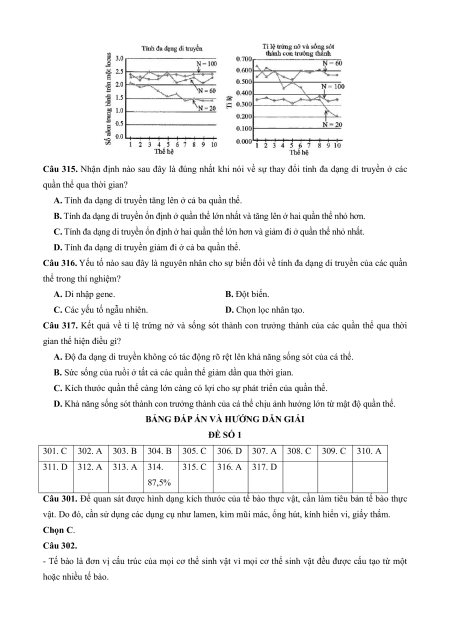 Câu 315. Nhận định nào sau đây là đúng nhất khi nói về sự thay đổi tính đa dạng di truyền ở các quần thể qua thời gian?