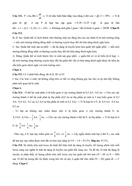 Câu 309. Khi nói về quần thể tự thụ phấn, phát biểu nào sau đây đúng?