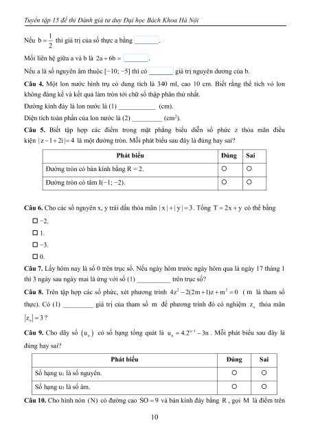 Tuyển tập 15 đề thi Đánh giá tư duy Đại học Bách Khoa Hà Nội Nếu 1