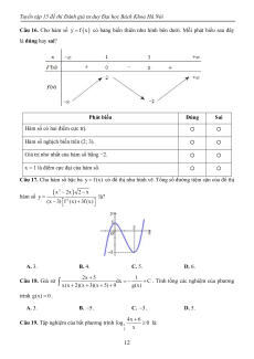 Câu 16. Cho hàm số y f x có bảng biến thiên như hình bên dưới. Mỗi phát biểu sau đây