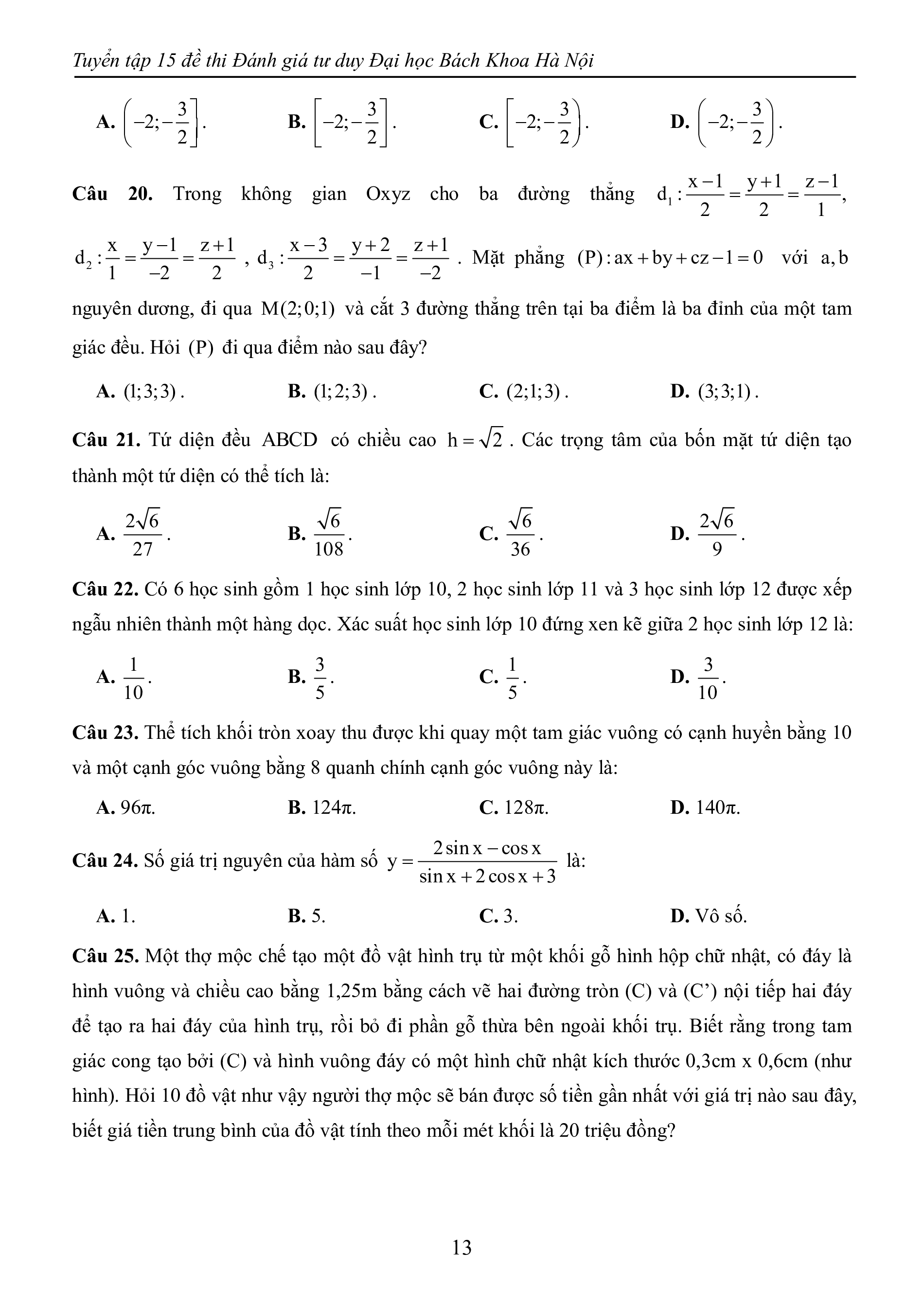 Tuyển tập 15 đề thi Đánh giá tư duy Đại học Bách Khoa Hà Nội