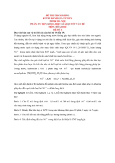 PHẦN: TƯ DUY KHOA HỌC/ GIẢI QUYẾT VẤN ĐỀ MÔN: HÓA HỌC ĐỀ SỐ 1