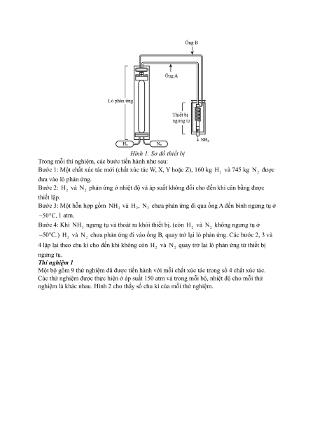 4 lặp lại theo chu kì cho đến khi không còn H và N quay trở lại lò phản ứng từ thiết bị 2 2 ngưng tụ. Thí nghiệm 1
