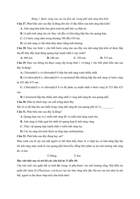 Câu 27. Phát biểu nào sau đây là đúng khi nói về đặc điểm của ánh sáng khả kiến?