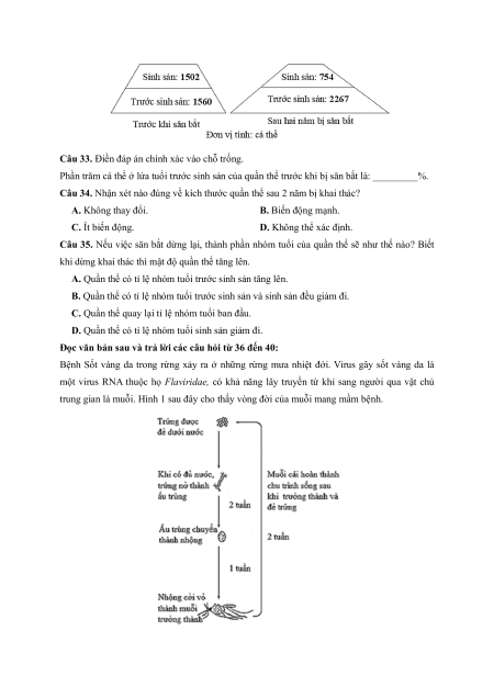 Câu 34. Nhận xét nào đúng về kích thước quần thể sau 2 năm bị khai thác? A. Không thay đổi.