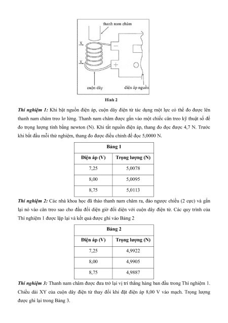 Các nhà khoa học đã thực hiện các thí nghiệm trên thiết bị điện từ như trong Hình 1.
