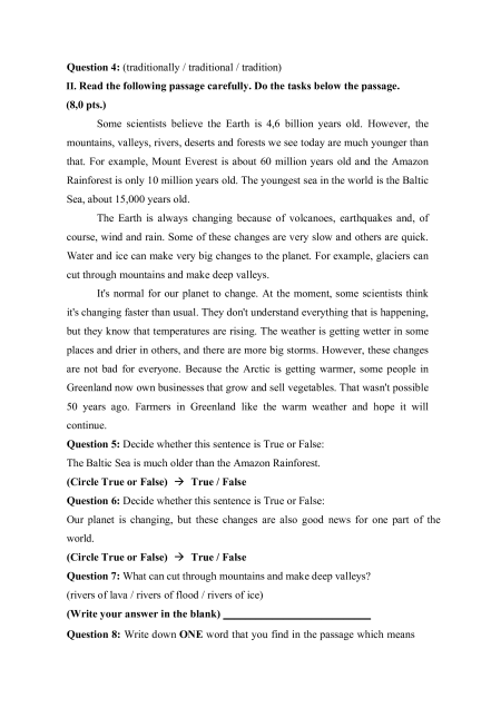 II. Read the following passage carefully. Do the tasks below the passage. (8,0 pts.)
