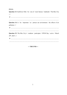 Question 13: Sunflower Park / be / one of / most famous / landmark / Thủ Đức City /./