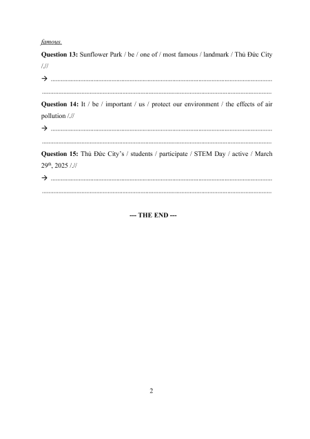 Question 15: Thủ Đức City’s / students / participate / STEM Day / active / March 29th, 2025 /./