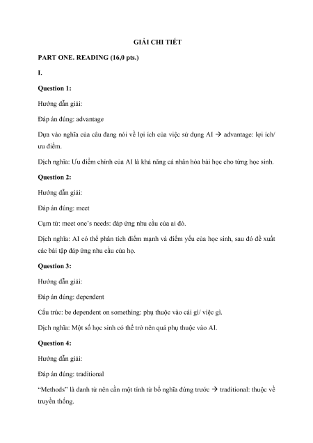 teachers and students. The main (1) __________ of AI is its ability to personalize