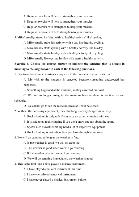 Exercise 6. Choose the correct answer to indicate the sentence that is closest in
