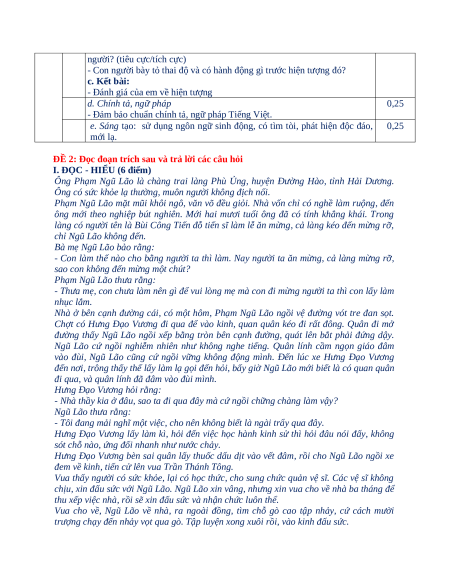 ĐỀ 2: Đọc đoạn trích sau và trả lời các câu hỏi