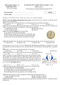 KÌ THI THỬ TỐT NGHIỆP THPT NĂM 2025 – LẦN 1 Thánh Tông - HCM MÔN: VẬT LÍ