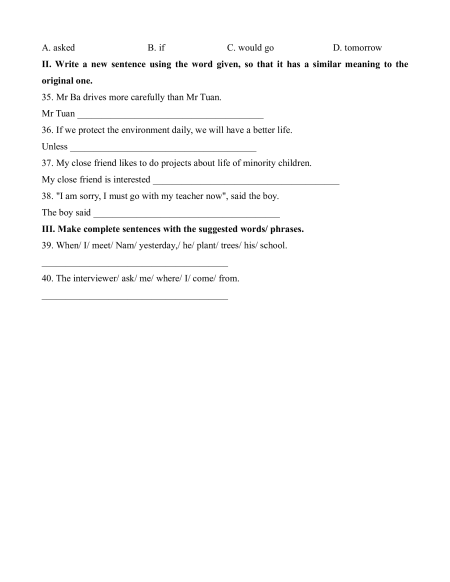 II. Write a new sentence using the word given, so that it has a similar meaning to the original one.