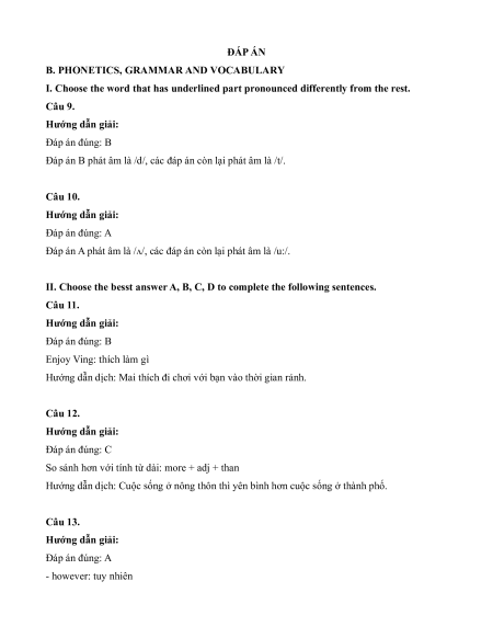 I. Choose the word that has underlined part pronounced differently from the rest. 9. A. laughed B. prepared C. stopped D. looked 10. A. flood B. igloo C. typhoon D. balloon