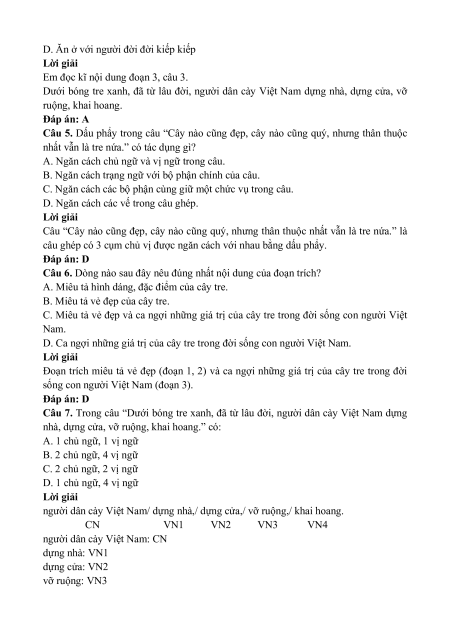 Câu 7. Trong câu “Dưới bóng tre xanh, đã từ lâu đời, người dân cày Việt Nam dựng