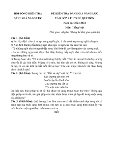 VÀO LỚP 6 THCS LÊ QUÝ ĐÔN Năm học 2023-2024 Môn: Tiếng Việt