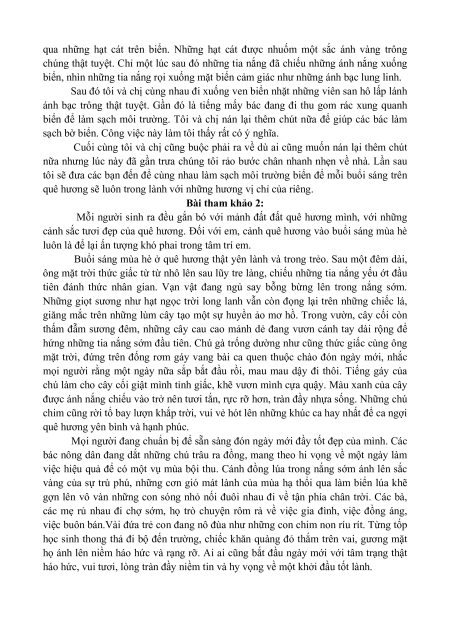 Kết bài: Nêu suy nghĩ, cảm xúc của em sau khi được quan sát khung cảnh buổi sáng trên quê hương. Bài tham khảo 1: