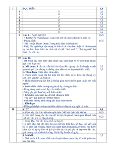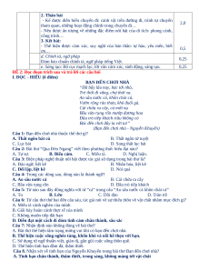 Viết một bài văn kể về chuyến đi tham quan một di tích lịch sử, văn hoá ở địa phương em. GỢI Ý TRẢ LỜI Phần Câu Nội dung Điểm I ĐỌC HIỂU 6,0 1 D 0,5 2 B 0,5 3 C 0,5 4 D 0,5 5 C 0,5 6 D 0,5 7 A 0,5 8 D 0,5 9