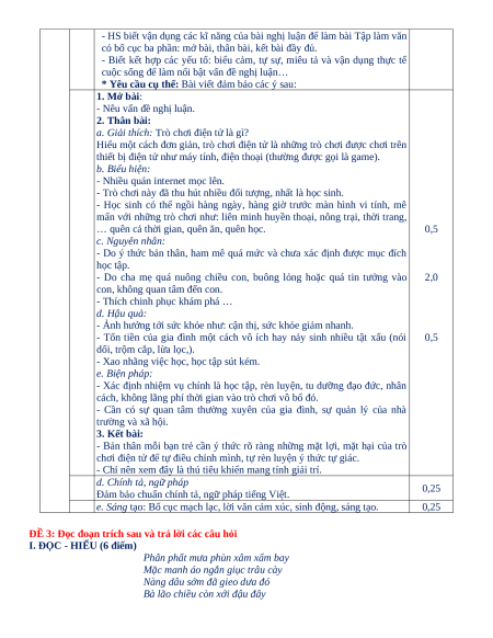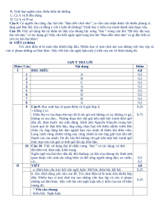 còn vi phạm những sai lầm khác. Hãy viết bài văn nghị luận nêu ý kiến của em về hiện tượng đó. GỢI Ý TRẢ LỜI Phần Câu Nội dung Điểm I ĐỌC HIỂU 6,0 1 A 0,5 2 B 0,5 3 C 0,5 4 A 0,5 5 B 0,5 6 D 0,5 7 B 0,5 8 A 0,5 9