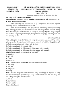HỌC SINH DỰ TUYỂN VÀO LỚP 6 THCS LÝ TỰ TRỌNG ĐỀ CHÍNH THỨC Năm học 2022-2023 Môn: Tiếng Việt