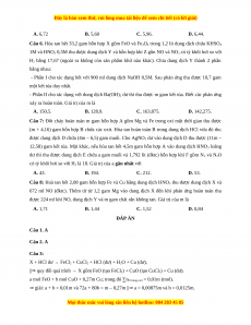 được 224 ml khí NO, dung dịch Y và m gam chất rắn không tan. Giá trị của m là A. 1,71 B. 1,44 C. 1,52 D. 0,84 ĐÁP ÁN Câu 1. A Câu 2. A Câu 3: