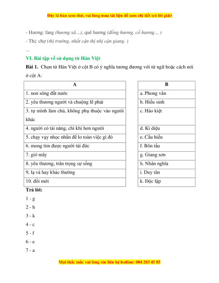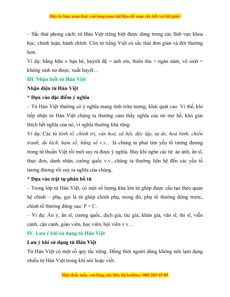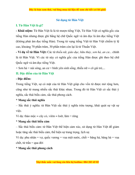 II. Đặc điểm của từ Hán Việt - Đặc điểm: