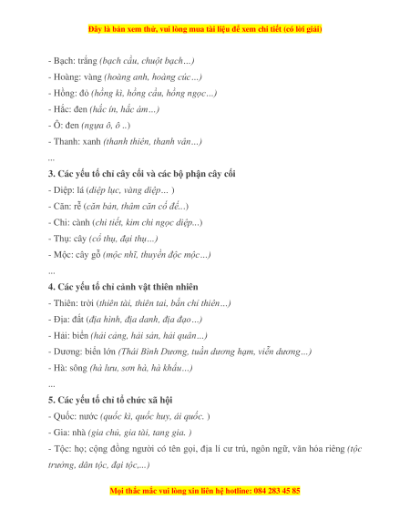 3. Các yếu tố chỉ cây cối và các bộ phận cây cối