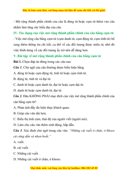V. Bài tập về mở rộng thành phần chính của câu bằng cụm từ