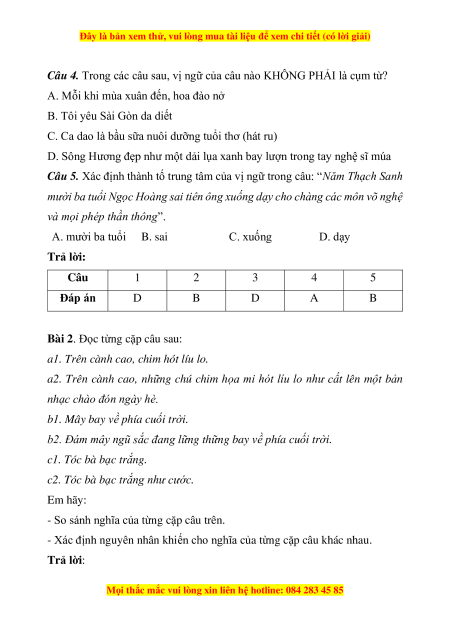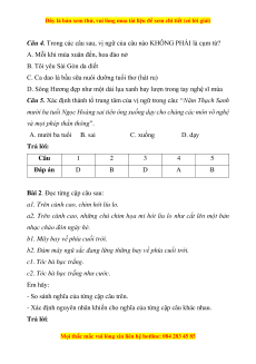 Câu 4. Trong các câu sau, vị ngữ của câu nào KHÔNG PHẢI là cụm từ?
