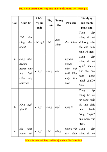 sau) của cụm từ đó. Cho biết tác dụng của các thành phần phụ đó.