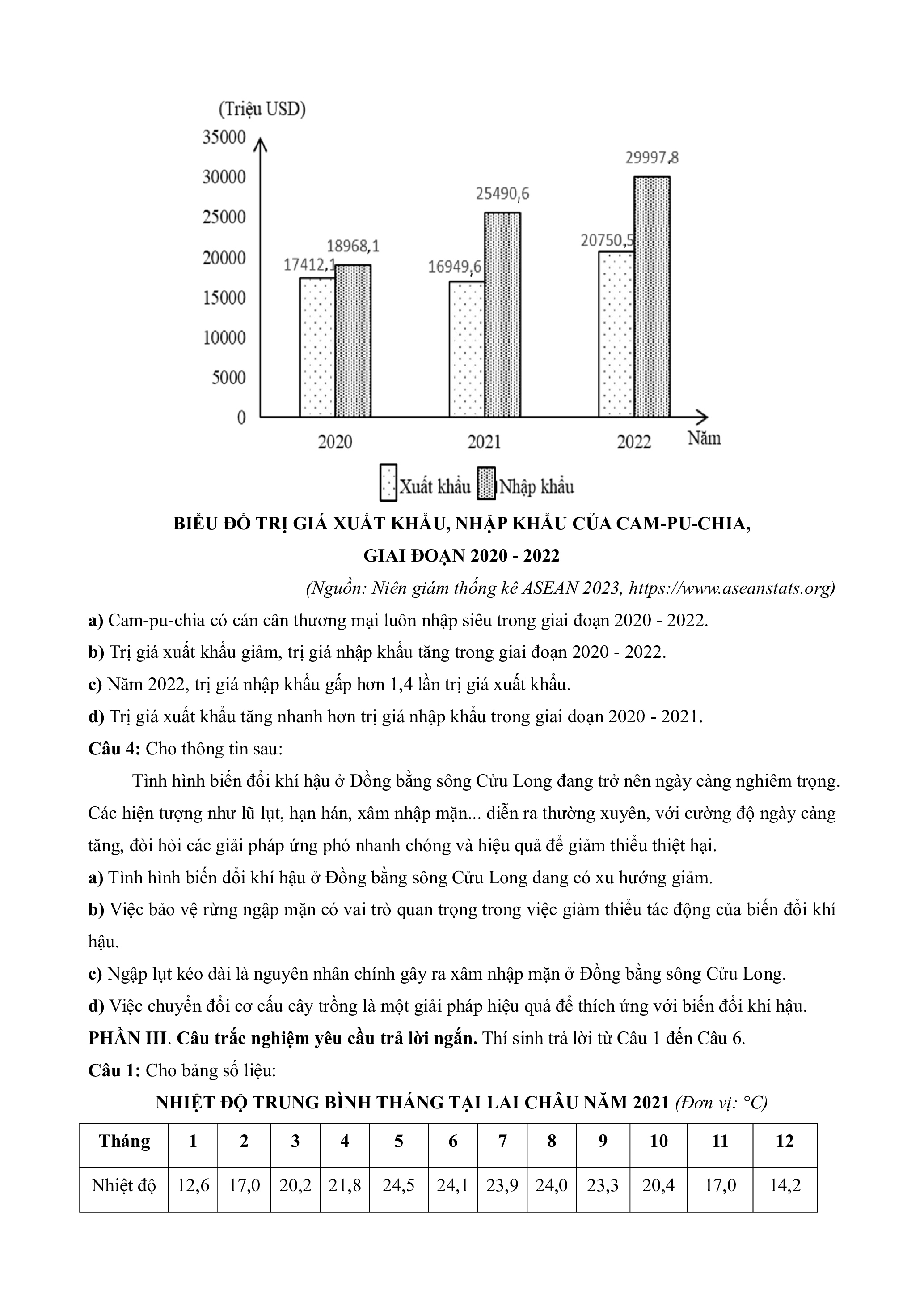 a) Tình hình biến đổi khí hậu ở Đồng bằng sông Cửu Long đang có xu hướng giảm.
