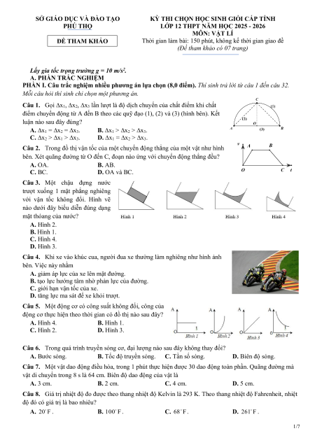 LỚP 12 THPT NĂM HỌC 2025 - 2026 MÔN: VẬT LÍ ĐỀ THAM KHẢO