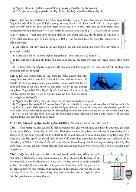 Câu 30. Ở mặt hồ, áp suất khí quyển là 105 Pa. Giả sử nhiệt độ ở đáy hồ và