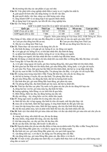 Câu 4. Nước ta có nhiều thiên tai chủ yếu do