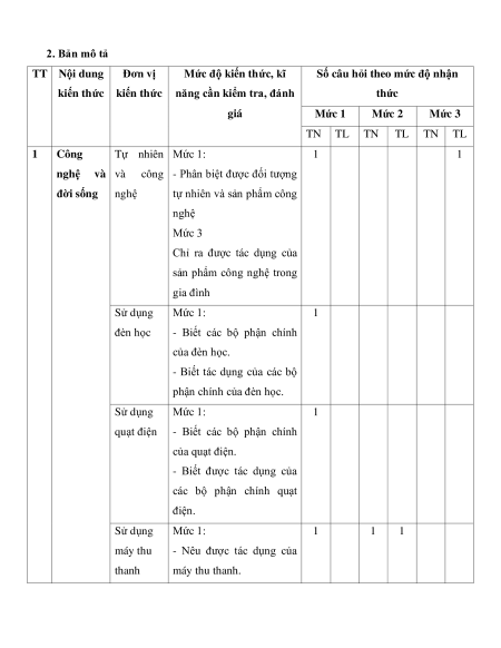 năng cần kiểm tra, đánh thức giá Mức 1 Mức 2 Mức 3 TN TL TN TL TN TL 1 Công Tự nhiên Mức 1: 1 1 nghệ và và