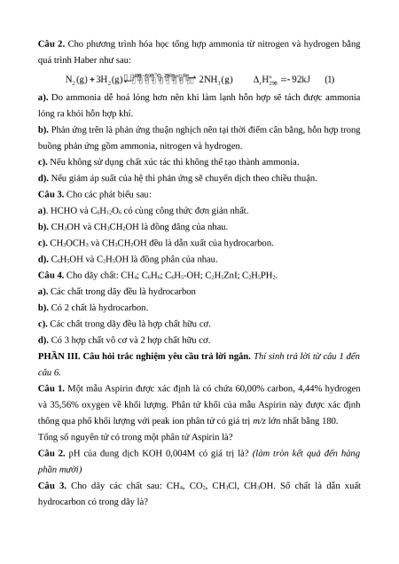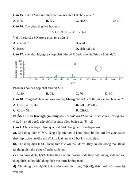Câu 15. Phân tử nào sau đây có chứa một liên kết cho - nhận? A. NH3. B. N2. C. HNO3. D. H2.