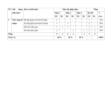 Mức độ nhận thức Tổng kiến thức Mức 1 Mức 2 Mức 3 Số CH % TN TL TN TL TN TL TN TL điểm 1