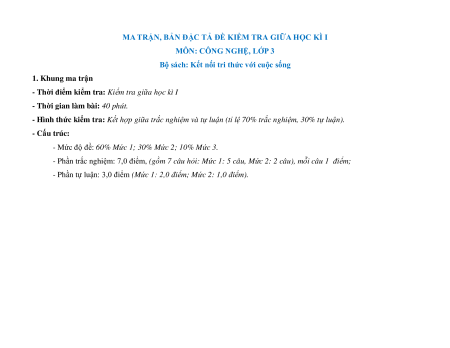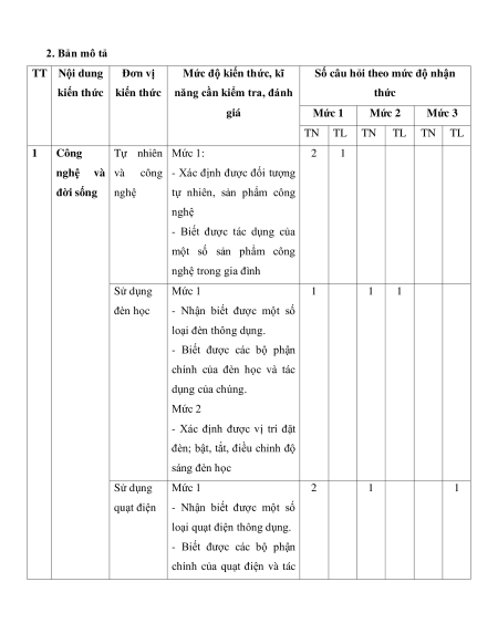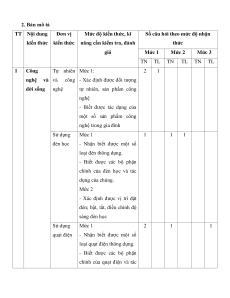 năng cần kiểm tra, đánh thức giá Mức 1 Mức 2 Mức 3 TN TL TN TL TN TL 1 Công Tự nhiên Mức 1: 2 1 nghệ và và