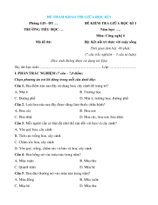ĐỀ THAM KHẢO THI GIỮA HỌC KÌ I Phòng GD - ĐT …