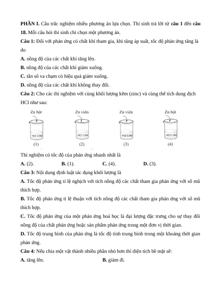 Câu 2: Cho các thí nghiệm với cùng khối lượng kẽm (zinc) và cùng thể tích dung dịch HCl như sau: