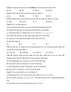11 câu (2,75 điểm) trắc nghiệm 4 Nhóm halogenVIIA