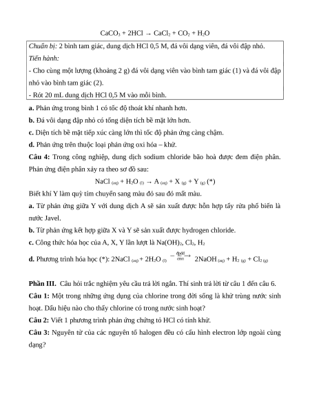 ứng hoá học, nguyên tố nhóm VIIA (nhóm halogen) Trong đó:
