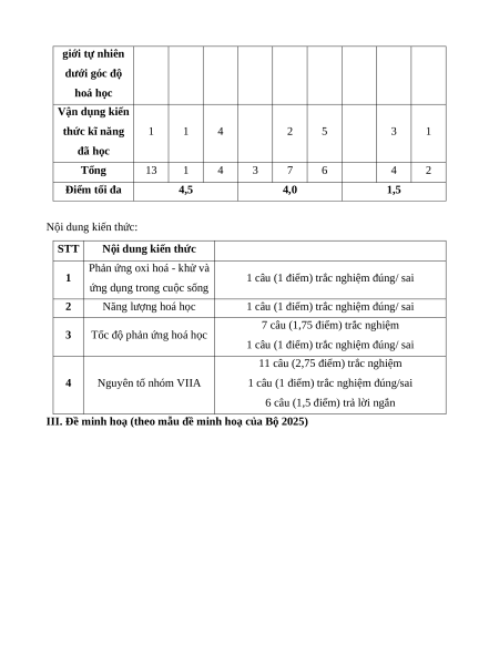 III. Đề minh hoạ (theo mẫu đề minh hoạ của Bộ 2025) Sở GD- ĐT …