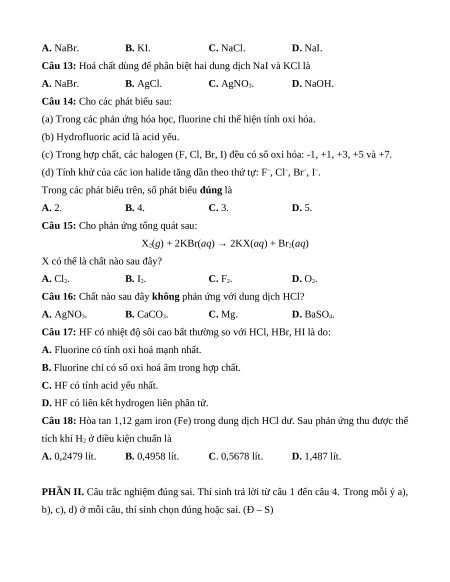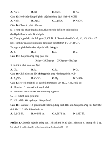11 câu (2,75 điểm) trắc nghiệm 4 Nguyên tố nhóm VIIA