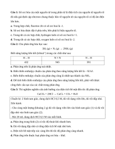 Câu 7: Khi nhiệt độ tăng thêm 10oC, tốc độ phản ứng hoá học tăng thêm 2 lần. Tốc độ