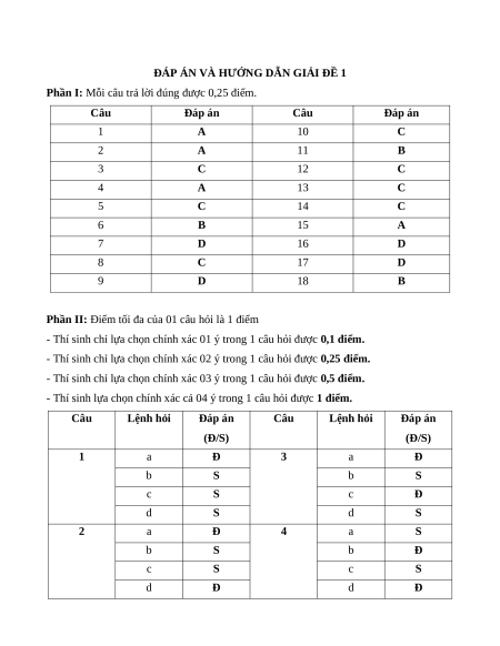 1 câu (1 điểm) trắc nghiệm đúng/ sai