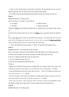 Câu 40. Tom’s work as a college admissions officer, who is part-time, brings him some social skills. A. a. B. who. C. him. D. skills.