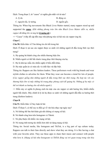 Câu 50. In paragraph 4, why are rappers compared with fashion leaders?